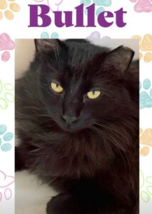Bullet is a shy but very sweet boy looking for a gentle, patient home. Once he feels safe, his soft personality begins to shine. He’s a tender-hearted kitty who just needs someone willing to give him the time and love he deserves.