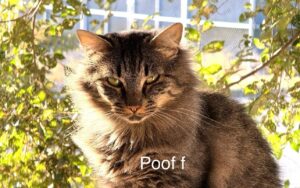 Poof is a very shy young adult female who’s looking for a calm, patient home where she can feel safe and come out of her shell at her own pace. She’s sweet at heart, loves to cuddle, and does well with other cats. Dogs are unknown, but a quiet household will help her thrive.